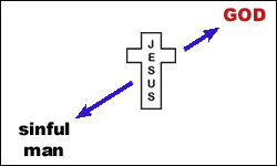 ________________________________________ Law #3 - Jesus Christ is God's ONLY provision for sin. Through Him you can know and experience God's love and plan for your life. Jesus Died in Our Place "But God demonstrates His own love toward us, in that while we were yet sinners, Christ died for us" (Romans 5:8) Jesus Rose from the Dead "Christ died for our sins... He was buried... He was raised on the third day, according to the Scriptures... He appeared to Peter, then to the twelve. After that He appeared to more than five hundred..." (I Corinthians 15:3-6) Jesus is the Only Way to God "Jesus said to him, 'I am the way, and the truth, and the life; no one comes to the Father, but through Me.'" (John 14:6) The diagram below illustrates that God has bridged the gulf which separates us from Him by sending His Son, Jesus Christ, to die on the cross in our place to pay the penalty for our sins and unite us with God the Father.