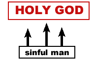 ________________________________________ Law #2 - Man is SINFUL and SEPARATED from God - therefore, man cannot know and experience God's love and plan for his life. Recognize that you're a sinner. First, you must admit your spiritual need: "There is none righteous, no, not one" (Romans 3:10). We are all in the same boat and the simple fact is that we can't make excuses or blame others for our circumstances or for our actions. "For all have sinned and fall short of the glory of God." (Romans 3:23) Man was created to have fellowship with God; but, because of his stubborn self-will, he chose to go his own independent way and the fellowship with God was broken. This self-will, characterized by an attitude of active rebellion or passive indifference, is evidence of what the Bible calls sin. Man is Separated "For the wages of sin is death, but the free gift of God is eternal life in Christ Jesus our Lord." (Romans 6:23) The diagram below illustrates that God is holy and man is sinful. A great gulf separates the two. The arrows show that man is continually trying to reach God and the abundant life through his own efforts, such as living a good life, following specific philosophies or religions, etc.- but we are not capable of doing this on our own. We will always feel like there is something missing in our lives or maybe even feel like we are just coasting through life because we have no direction or purpose.